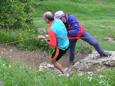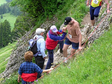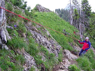 gut gesichert durch Seil und Bergwacht.